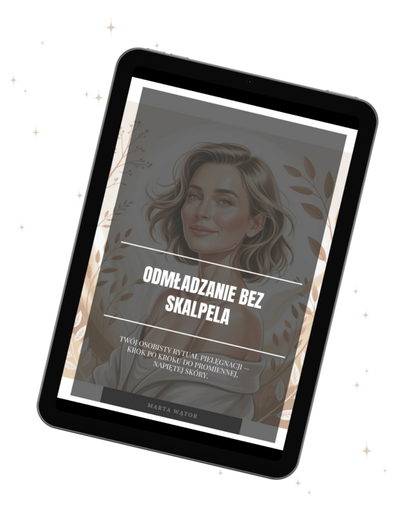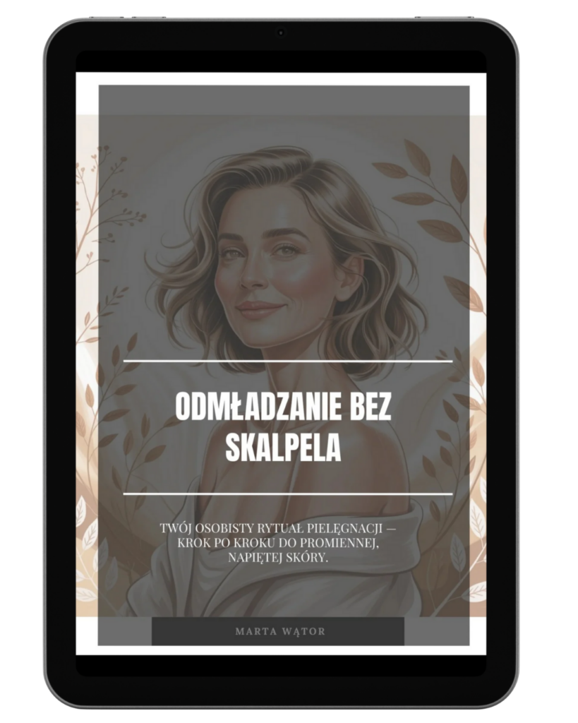 „Odmładzanie bez skalpela” to praktyczny przewodnik, który krok po kroku pokaże Ci, jak bezpiecznie stosować składniki aktywne, łączyć produkty i stworzyć rutynę dopasowaną do Twojej skóry, tak żeby wyglądała młodziej. Dzielę się w nim z Tobą doświadczeniem zbieranym przez 12 lat pracy z klientkami w gabinecie kosmetologicznym.